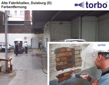 Díky možnostem, které torbo® přístroje poskytují, je možno provádět nejen hrubé a běžné, ale i velmi šetrné čištění povrchů, takže je lze využít jak při sanacích betonových povrchů, tak při odstraňovaní starých nátěrů ze štukových omítek a při čištění památek.