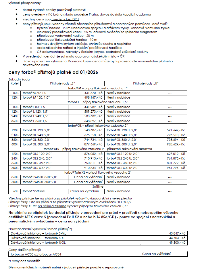 S německou firmou torbo® ENGINEERING KEIZERS GmbH jsem se do prvního kontaktu dostal koncem roku 1991. Její výrobní program mne okamžitě zaujal. Firma vyrábí přístroje na tryskání za vlhka, patentované roku 1984.